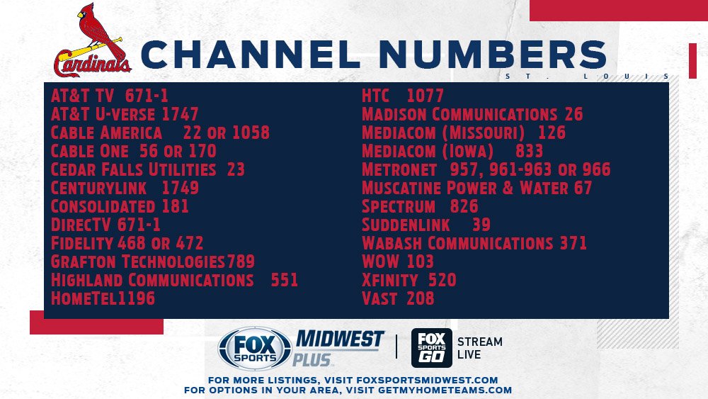 Bally Sports Midwest On Twitter Game Time Fsmw Plus Channel Numbers Below Cardinals Https T Co U3tnwrvk9i Twitter